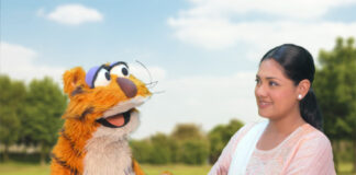 Tisha with Sisimpur’s Halum on World Tiger Day