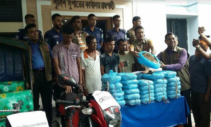 On a tip-off, a DB team conducted a raid at Chapal village under Godagari Upazila around 7.45 pm and arrested them. The operation team recovered 52 kilograms of ganja from their possessions.