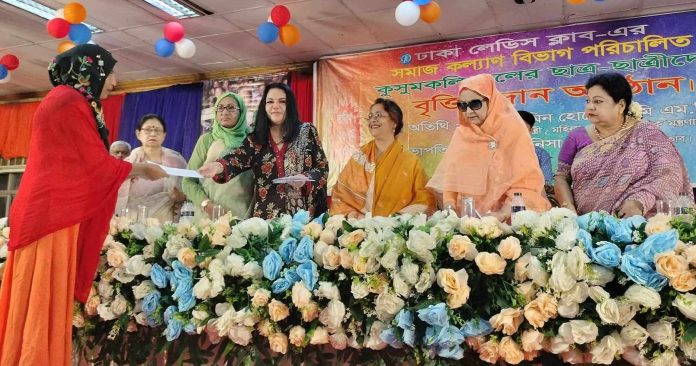 Samad Fauzia Foundation recently awarded Scholarship to 50 Poor and Meritorious Students of Kusumkali School, founded in 1985 by legendary women leader Begum Fauzia Samad, former president of Dhaka Ladies Club. State Minister of Women and Child Affairs Simeen Hossain Rimi MP was present as the chief guest in the program Presided over by Anisa Haque, President of Dhaka Ladies Club at Fawzia Samad Central Hall. Sabrina Samad, Founder and Chairperson of Samad Fawzia Foundation gave scholarships among the students.