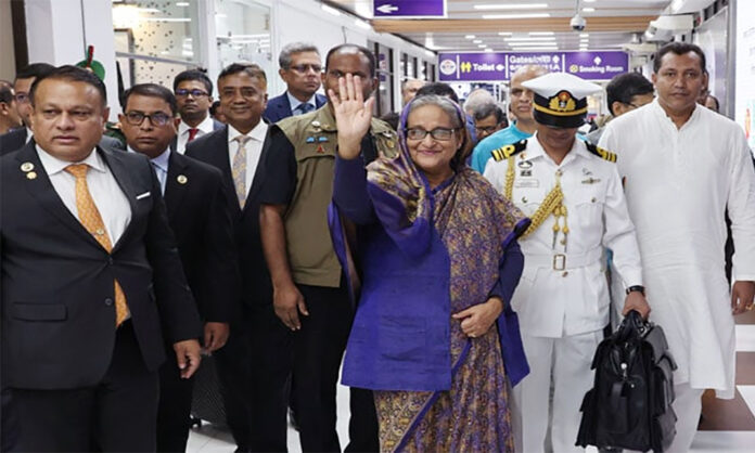 A flight of Biman Bangladesh Airlines carrying the Prime Minister and her entourage members landed at Hazrat Shahjalal International Airport in Dhaka at 01.55am.